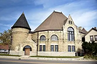 The First Universalist Church in Elgin, Illinois was built in 1892. It was designed by George Hunter to resemble a pocket watch in Richardsonian Romanesque style.[1] The church was listed on the National Register of Historic Places in 1980 and was subsequently included as a contributing property in the Elgin Historic District.[1]