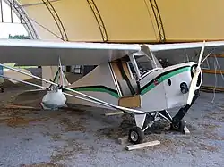 The aircraft is of predominantly wooden construction, with a wooden geodesic (called "geodetic" in many '80s sport-aviation magazines, likely in error) fuselage and wood framed wings and tail surfaces all covered in doped aircraft fabric. The high wing is supported by aluminum "V" struts with jury struts. The control system is standard three-axis type including ailerons, elevators and tail-mounted rudder. The conventional configuration fixed main landing gear is made from steel tube with bungee suspension, while the tail wheel is steerable. The engine cowling is built from fiberglass. Pilot access to the cockpit is via a fold-down door on the right-hand side of the fuselage. The windshield is fashioned from Lexan and side windows are optional.[1]