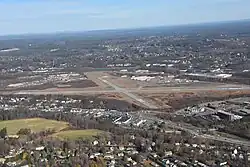 Fitchburg Municipal Airport (ICAO: KFIT, FAA LID: FIT) is a public airport located 3 miles (5 km) southeast of the central business district of Fitchburg, a city in Worcester County, Massachusetts, United States. This airport is owned by the City of Fitchburg.[1] The airport also serves as a base for the Fitchburg Pilots Association/EAA chapter 1454. This group uses the airport to host events such as Young Eagles and flights in EAA's Ford Trimotor.[2] The airport underwent a renovation in 2020 that extended runway 14/32 by 500 feet to its current length of 5001 feet. The runway extension was to meet requirements for insurance companies to permit certain small jets to land and take off from the airport. The renovation removed runway 2/20. Occasionally the airport serves as a home for rock festivals such as The Warped Tour and Locobazooka.