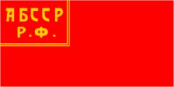 After the formation of the Bashkir ASSR, the first flag of the Bashkir ASSR was adopted in 1922. The flag was a red flag, with the abbreviation of the name of the republic inscribed in the flag.[5] The flag was used until 11 October 1924, when the decree "On the change of the State flag of the Bashkir ASSR", changed the design of the flag of the Bashkir ASSR. The inscription in the flag was replaced with the hammer and sickle.[6]