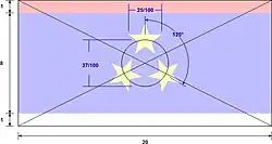 Design | Horizontal tricolour of red, blue, and white, with three yellow five-pointed stars |