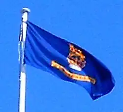 The flag of the governor-general of New Zealand is an official flag of New Zealand and is flown continuously on buildings and other locations when a governor-general is present. The flag in its present form was adopted in 2008 and is a blue field with the shield of the New Zealand coat of arms royally crowned. The official heraldic description is "A flag of a blue field thereon the Arms of New Zealand ensigned by the Royal Crown all proper".[1]