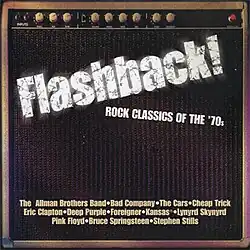 Flashback! Rock Classics of the '70s is a charity album. This compilation is filled with the names of artists who rarely agree to allow their songs to appear on compilations. Released through Realm Records, it benefits the T.J. Martell Foundation, which contributes money to cancer and AIDS research. These tracks come from five of the six major labels of the day, BMG being the exception.