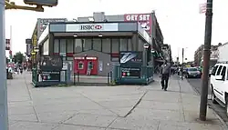The Flatbush Avenue–Brooklyn College station (announced as Brooklyn College–Flatbush Avenue on trains and signed as Flatbush Avenue) is the southern terminal station on the IRT Nostrand Avenue Line of the New York City Subway. It is located at the intersection of Flatbush and Nostrand Avenues in Flatbush, Brooklyn, locally called "The Junction", which also meets the neighborhoods of East Flatbush to the east, Flatlands to the southeast and Midwood to the southwest.[3] The station is served by the 2 train at all times and the 5 train on weekdays. It is also the closest subway station to Brooklyn College and Midwood High School.