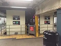 46. ^ Cox, Jeremiah (July 22, 2009). A single High Entrance/Exit Turnstile provides the only way to leave Track 2 at this exit except during rush hour when the turnstiles are open. Retrieved January 16, 2018.