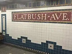 23. ^ Cox, Jeremiah (July 22, 2009). "A close up of a mosaic F in the trimline at Flatbush Avenue". subwaynut.com. Retrieved January 16, 2018.