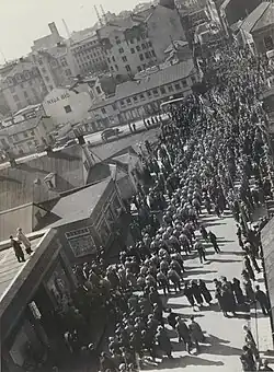 The Nationalist Party failed to gain representation, except on the University of Iceland Student Council, where they held one seat for four years running.[6] They did, however, gain attention in 1936 when they obtained a copy of the diary of the Minister of Finance and published details in Ísland.[5] The party offices were raided by police and a number of leading members arrested, although ultimately there were no convictions.[5] In general, however, they did not enjoy widespread support at any point in their existence, despite wide admiration for Nazi Germany in the island.[7] This was reflected in their electoral performances, with the party gaining 0.7% of the vote in the 1934 election and 0.2% in 1937.[2] Their best result was 2.8% in the 1934 municipal elections in Reykjavik.