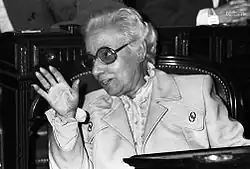 Florentina Gómez Miranda (14 February 1912 – 1 August 2011) was an Argentine teacher and lawyer. Born in Olavarría in the province of Buenos Aires, she attended the National University of La Plata, from which she graduated in 1945.[1] From then on, she was active in the struggle for women's rights. Among the laws she promoted, the divorce law was the most important.[2][3] From 1983 to 1991, Miranda was a member of the Chamber of Deputies for the Unión Cívica Radical. After her death, Miranda lay in state in the “Salón de los pasos perdidos” in the National Congress building.[4][5]
