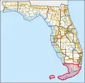 Florida's 28th congressional district is a district created as a result of the 2020 census. The first candidates ran in the 2022 House elections for a seat in the 118th United States Congress.[4] The district was created during the 2020 redistricting cycle as the successor to the previous 26th district in the 2010s. It includes all of Monroe County, home to the Florida Keys, and many of Miami's outer southwestern suburbs, including all of Homestead, The Hammocks, Kendale Lakes, Tamiami, and others. All three of Florida's national parks – the Everglades, Biscayne, and the Dry Tortugas – are also located in this district.