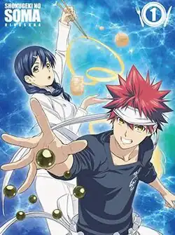 ![]() Cover art of the first Blu-ray compilation, featuring Soma Yukihira (foreground) and Megumi Tadokoro (background) | |