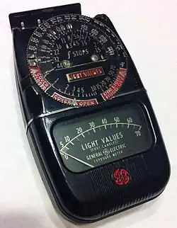 General Electric Light Meter used in photography to measure light values in foot-candles. | |
