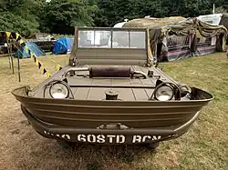 The Ford GPA "Seep" (Government 'P' Amphibious, where 'P' stood for its 80-inch wheelbase), with supply catalog number G504, was an amphibious version of the World War II Ford GPW jeep. Over 12 thousand were made and they served with Allied forces in the many theatres of WW2, including the Pacific, Eastern front, and from D-day to the end. After the war as surplus they found many niche roles, and today examples can be found in museums collections or at military history shows.