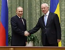 During the 2004 Ukrainian presidential election, Putin twice visited Ukraine before the election to show his support for Ukrainian Prime Minister Viktor Yanukovych, who was widely seen as a pro-Kremlin candidate, and he congratulated him on his anticipated victory before official election results had even been released.[28][29] Putin's personal support for Yanukovych was criticized as unwarranted interference in the affairs of a sovereign state (See also The Orange revolution). Crises also developed in Russia's relations with Georgia and Moldova, both former Soviet republics accusing Moscow of supporting separatist entities in their territories (i.e., Abkhazia, South Ossetia, and Transnistria.)