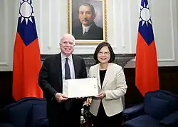 The ROC is one of the main supporters of official development assistance,[41] with the International Cooperation and Development Fund managing ROC's Foreign Assistance and International Cooperation projects.[42][43] As of 2010, along with other US security allies including Australia, New Zealand, Japan, and South Korea in the Asia-Pacific region with Taiwan Relations Act, officials of the ROC have gained quasi-official level visits to the United States both in the governmental and political level, including the Taiwanese–US cooperative military guidance[44][45][46] in the annual Han Kuang joint-force exercises.[47]