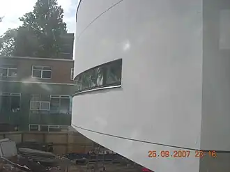The school began a major redevelopment project in July 2006 which completed in January 2008.[23] The only part of the school which remains unchanged is the current art block, which was built recently. The rest of the school was demolished and rebuilt from the ground up with the three-floor plan changed to a higher four-story building. The new school building now features a large atrium which can also act as a fully functioning theatre, two fully equipped drama rooms, a separate theatre, a fully equipped music department with a Recording studio and a Mac computer room. There is also a dance studio with sprung floors, mirrors, and a 600 watt speaker system.