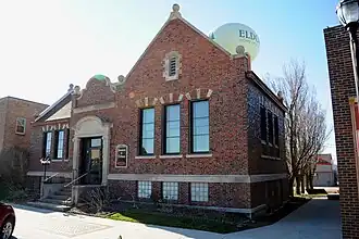 The Former Eldora Public Library is a historic building located in Eldora, Iowa, United States. On December 30, 1901, the Carnegie Foundation agreed to grant the community $10,000 to build a new library building.[2] The Chicago architectural firm of Patton & Miller designed it in the Renaissance Revival style, and it was dedicated on May 11, 1903. The single-story, brick structure is somewhat rare in that its plan is an asymmetrical massing of intersecting gables.[3] The entrance pavilion is located at the intersection of the two masses. The building was listed on the National Register of Historic Places in 1983.[1] In 2010 it was included as a contributing property in the Eldora Downtown Historic District in 2010.[4] The library has subsequently moved to a new facility, and this building has been converted for commercial use.