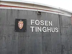 Fosen District Court (Norwegian: Fosen tingrett) was a district court in Trøndelag county, Norway. The court was based at the Fosen Tinghus in the town of Brekstad in Ørland Municipality. The court existed from 1591 until 2021. It had jurisdiction over the municipalities of Ørland, Bjugn, Frøya, Hitra, Indre Fosen, Osen, Roan, and Åfjord. Cases from this court could be appealed to Frostating Court of Appeal.[1][2] The court was last led by the acting chief judge (Sorenskriver) Leif Otto Østerbø. This court employed a chief judge, two other judges, and several prosecutors and administrators.[3]