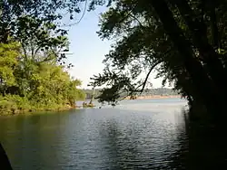 Fourteen Mile Creek, shown as Fourteenmile Creek on federal maps,[1] is a 22.7-mile-long (36.5 km)[2] creek in Clark County, Indiana, close to Charlestown. It is so named because its mouth on the Ohio River is 14 miles (23 km) upstream from the Falls of the Ohio; similar to how Eighteen Mile Island, Twelve Mile Island, and Six Mile Island got their names.[3] It is navigable for 2.9 miles (4.7 km) from the Ohio River.[4] It is a State Heritage Program Site and a popular canoe trail.[5]
