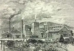 Between 1646 and 1648, the first hammer mills were built and Frýdland gradually became a centre of ironworks. The village later known as Nová Ves was founded near the hammer mills in 1647. In 1675, blast furnaces were built. Thanks to the development of the ironworks and the prosperous paper mill, the village was promoted by Maria Theresa to the market town again in 1775.[3]