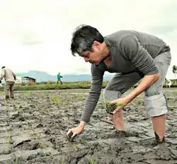 His campaign slogan was "Goodbye Gutom, Hello Pagkain" (lit. transl. "Goodbye Hunger, Hello Food"), reflecting his platform centered on the agricultural sector, with a focus on food security and support for farmers and fisherfolk.[58] He joined Robredo's call for an "exhaustive review" of the Rice Tariffication Law (RA No. 11203), arguing that while opening markets could be beneficial, farmers needed sufficient preparation and support to compete.[59]