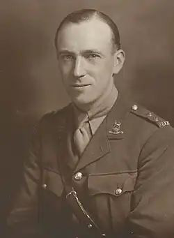 De Groot returned to Ireland on the outbreak of World War I and enlisted in the 15th Hussars, a cavalry regiment. He saw active service on the Western Front, later transferring to a tank battalion with the rank of acting captain.[1] He was present for the Battle of the Somme in 1916 and the Battle of Passchendaele in 1917. He was discharged in 1919, with his discharge delayed by his recovery from Spanish flu.[3]