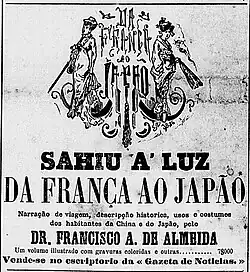 : CS1 maint: location missing publisher (link) - ^ Jacques Ferreira Pinto (August 2016). “Da França ao Japão”, de Francisco Antonio de Almeida: narrativa de viagem de um cientista brasileiro em 1874 (PDF) (in Portuguese). ISBN 978-85-65957-05-2. Wikidata Q100271075. Archived from the original (PDF) on October 11, 2020.