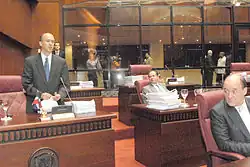 The Constitution Review Assembly met for the first time on Tuesday March 24 of the year 2009 in Santo Domingo. As Senator representing Santiago, he was appointed a coordinator of the Style Committee (Coordination and Support Body of the National Assembly).[11] The attribution and essential function of the Commission was to review the texts that would be decided by the Assembly at first reading regarding the correct use of the language to be presented to the Plenary in the second reading.[12]