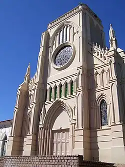 The Church of Our Lady of Good Delivery (Portuguese: Igreja de Nossa Senhora do Bom Despacho), located next to the Conceição Seminary, was one of the first churches built in Cuiabá. Friar Ignácio Gau collaborated with the French engineer Georges Mousnier, the Count of Manoir, to replace the Portuguese colonial-era chapel with a radically different structure: a Neogothic church resembling the Notre Dame in Paris. Dom Aquino supported the project and attended the laying of the foundation stone on September 8, 1918, during his tenure as President of Mato Grosso. He also advocated that it be renamed the Eucharistic Shrine of Our Lady of Good Delivery (Portuguese: Santuário Eucarístico de Nossa Senhora do Bom Despacho), and its façade reoriented in line with the façade of the Conceição Seminary. The new church differed in material, size, and style from the original, and most buildings in Cuiabá; its placement above the Historic Center of Cuiabá, however, made it a familiar landmark in the city.[4][5]