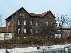 The first Frankfurt train station was a built is a terminal station with one platform for departures and arrivals and stabling for passenger traffic. The station building was on the north side of the tracks. At the end of the platform on the east side of the station there was a shed for wagons, locomotives and freight and a mail handling facility. After the construction of the through station workshop facilities were built on the site. The mail handling facility became a residence for rail officials and the passenger station building was used for administrative purposes. It was destroyed in an air raid in 1945. One of the buildings (Bahnhofstrasse 7) built as a workshop in the mid-1850s has been preserved and is a listed building.[14]