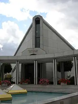 The Frankfurt Germany Temple is the 43rd constructed and 41st operating temple of the Church of Jesus Christ of Latter-day Saints (LDS Church). Located in the city of Friedrichsdorf, Germany, it was built with the same general architecture as the six-spire design used in the Boise, Chicago, and Dallas temples, but it was only given a single-spire.[2][3]
