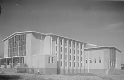 A site for a Church of England (Anglican) was reserved after the formal land sales.[62] Located on the corner of what is now Bay Street and High Street in the Frankston CBD, the two acre site also included an area for a school as well as a temporary burial ground.[62] A temporary hall was built in 1856 and served as both a place of worship and as a school (which later became the Woodleigh School).[62][63] The first post office in Frankston opened on 1 September 1857 which also initially operated from the hall.[46][64]