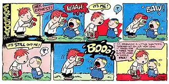 Comic Preserves did a 64-page book collection of the Freddy daily strips that ran from May to October in 1956.[5] Dell's Freddy comic book, which ran for three issues in 1963–64, was not by Baldwin but was drawn by Bob Gustafson.