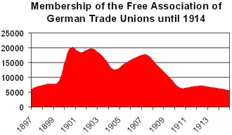 The decision to found a national organization was likely the result of several factors. First, the mainstream trade unions were increasingly reformist and centralized. Second, the localists gained confidence from their involvement in the dock workers' strike in Hamburg in late 1896 and early 1897.[14] Third, loss of membership (for example, the Berlin metal workers rejoined the DMV in 1897) convinced the localists of the need for action.[15]