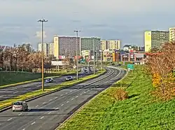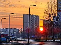 In the 1980s, most of the multi-family buildings were completed, housing relatively young families.[26] Many of the construction companies involved were from outside Bydgoszcz, including from Grudziądz and Inowrocław. Significant delays in providing infrastructure, particularly social infrastructure, occurred during this period. In the meantime, transport infrastructure investments were completed, including the Wojska Polskiego Avenue with a tram line, the expanded Kujawska Street with underground pedestrian crossings, and a six-lane dual carriageway in the Niziny valley (renamed John Paul II Avenue in the 1990s), which became part of the north-south transit route through Bydgoszcz, connecting to national road 5.[20] This development required the relocation of residents. In 1988, the Press Graphic Plant headquarters opened at Wojska Polskiego Avenue, housing production halls, warehouses, and a design and administration center (renamed Ortis S.A. in 2003).[27]