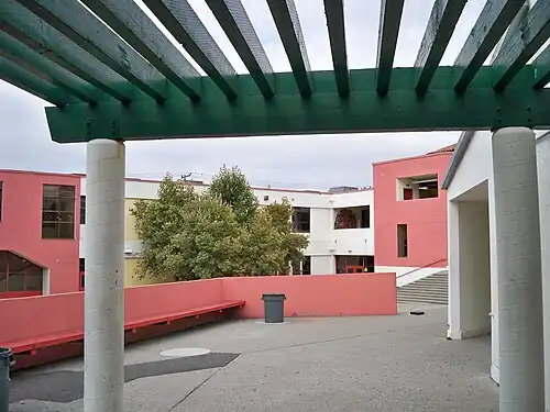 A major project to revamp the school’s campus, started in 2018 and completed in 2020, added an academic building, a football field with grandstands, a gymnasium, and a new front entrance to the school. The $133 million project—largely funded by local bond measure, Measure J—also included renovation to an academic building and addressing sustainability through bioretention planters, additional windows and skylights for more natural lighting, and a pair of electric vehicle chargers.[3]