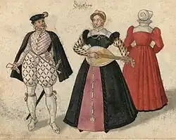 Louis XIV notably introduced one of the most noticeable feature of the men's costume of the time: immense wigs of curled hair.[13] A commonly held belief is that Louis XIV started to wear wigs due to balding, and to imitate this his courtiers put on false hair.[13] The wearing of wigs lasted for over a century; they went through many changes, but they were never quite so exaggerated as during this period.[13]