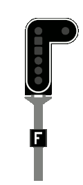 Slow 60 is a distant signal that indicates points in diverging position to be passed at a maximum speed of 60 km/h. It is always followed by a Slow 60 reminder. Slow 60 can be combined with the Flashing yellow signal. ![]() |