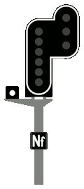 The semaphore orders a temporary halt, usually because the block it protects is engaged by another train. As a permissive signal, the semaphore allows the driver to proceed at low speed. The plate defines the level of permissiveness which determines under which conditions the driver may proceed. There may also be a small white light (lit œilleton) to confirm the permissiveness when required. A driver passing a red light must advance at a speed within sighting distance until they reach the next permissive signal. |