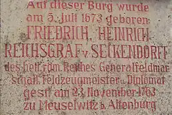 Friedrich Heinrich Reichsgraf von Seckendorff[1] (5 July 1673 – 23 November 1763, aged 90) was a Franconian field marshal and diplomat, in the service of the imperial Habsburg monarchy of Austria. Later he served as commander of the Bavarian army and fought Austria.