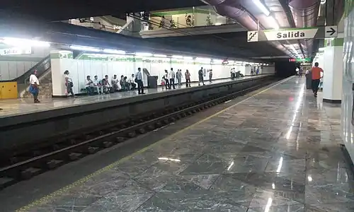 The Fundadores Station (Spanish: Estación Fundadores) is a station on Line 2 of the Monterrey Metro. It is located in the intersection of 15 de Mayo street and Cuauhtémoc Avenue in the Monterrey centre. The station was opened on 30 November 1994 as part of the inaugural section of Line 2, between General Anaya and Zaragoza.[2]