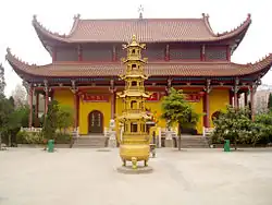 In the fourteenth century, Han Shantong sought to overthrow the ruling Mongol Yuan dynasty. Han styled himself as the "Great King of Light," claiming to be an incarnation of Maitreya Bodhisattva, and heir to the preceding Song dynasty.[4] Han was a native of Yingzhou, where he began the main thrust of the Red Turban Rebellion in 1351, initially gaining the support of 3000 rebels, and later 10,000.[4] After entering Shandong province, the Red Turban Army merged with other rebel movements, eventually leading indirectly to the founding of the Ming dynasty.
