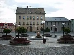 Gößnitz (German pronunciation: [ˈɡœsnɪts] ) is a town in the ⓘAltenburger Land district, in Thuringia, Germany. It is situated on the river Pleiße, 12 km south of Altenburg, and 20 km northwest of Zwickau. Gößnitz received its town charter in 1718. It is known for the railroad junction of the Leipzig-Hof railway connection and the Central-Germany connection (Dresden - Chemnitz - Gößnitz - Gera - Erfurt) and its station prides itself having Europe's longest platform, as well as the Gößnitz Open-Air. The town's greatest prosperity was at the time of industrialization; Hence Viktor Grimm's representative malt factory from 1889 still characterizes the cityscape.