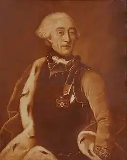 The Solages family is mentioned in documents from 1028. In 1724 they gained large landholdings in Carmaux by marriage.[1] Gabriel Charles, chevalier de Solages, seigneur de Saint-Benott et de Blaye, was born on 19 August 1711 at Vailhauze, Saint-Affrique, Aveyron.[2] He was the son of François-Paul de Solages, Marquis de Carmaux in Albigeois, and his second wife Isabeau Catherine de Galatrave. His elder brothers were Antoine-Paulin de Solages (1706–78), Marquis de Carmaux and François-Paul (1707–73), Comte de Solages.[3]