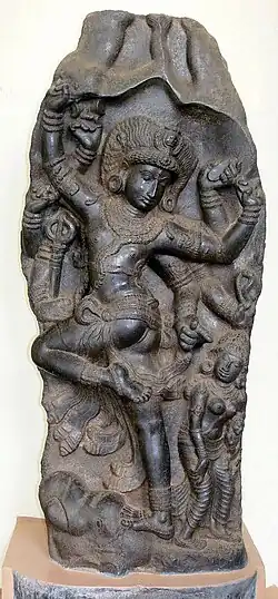 ![]() Gajasurasamhara panel at Hoysaleswara temple, Halebidu | |