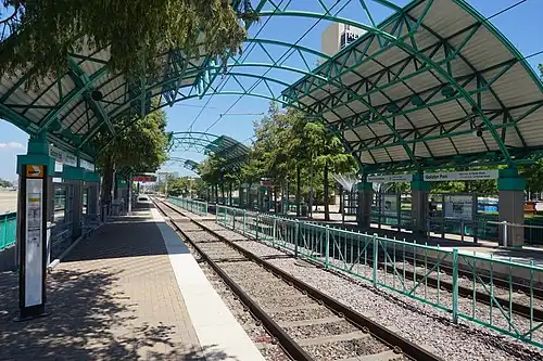 Galatyn Park station is a DART light rail station in Richardson, Texas. The station serves the Red Line and, during peak periods, the Orange Line.[2] It is located on a frontage road of North Central Expressway (US 75) and is named for the adjacent Galatyn Park Urban Center development.