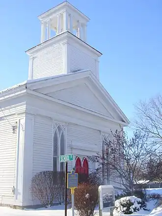 Gallupville Evangelical Lutheran Church is a historic Evangelical Lutheran church on 890 NY 443 in Gallupville, Schoharie County, New York. It is a rectangular, gable roofed, timber framed structure with narrow clapboard siding in the vernacular Greek Revival style. It was built in 1853 and a two bay, gable roofed Sunday School parish wing was added about 1964.[2] A large two floor parish hall was added about 2002 that includes classrooms, offices, youth room, nursery, library, food pantry and storage areas.