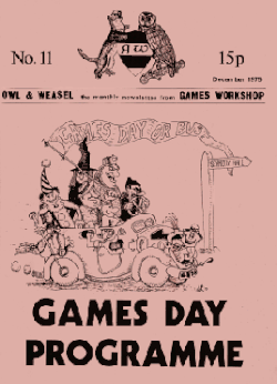 - ^ "Games Day Programme". Owl and Weasel (11). Games Workshop. December 1975.