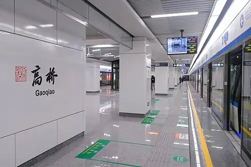 Gaoqiao (Chinese: 高桥) is a metro station on Line 6 of the Hangzhou Metro in China. It was opened on 30 December 2020, together with the Line 6.[1][2] It is located in the Fuyang District of Hangzhou, the capital of Zhejiang province.