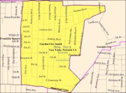 ![]() ![]() Garden City South, New York Location on Long Island ![]() ![]() Garden City South, New York Location within the state of New York | |