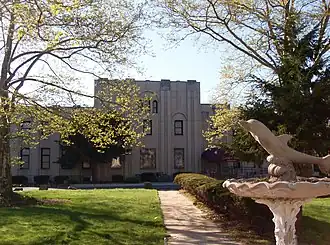 In the 19th century, the New York and New Jersey Cremation Company performed cremations inside of Becker's Castle, a brownstone structure on the west side of then 'Hudson Boulevard' (now Kennedy Boulevard).[2][3] In 1907, the company remodeled the building, dividing the roomspaces into thousands of niches for urns and adding a two-story wing to the south side.[4]
